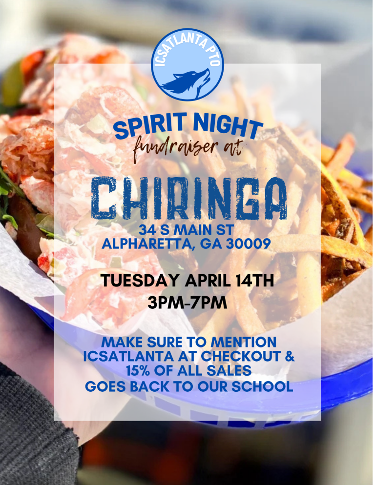 Upcoming ICSAtlanta PTO Events March 1-14 – Silent Auction FundraiserFriday March 13th – Race packet pick-up – 3-7pmNew Balance Store, 7300 North Point Pkwy, Unit 119, Alpharetta, Ga 30022 Saturday March 14th – Race packet pick-up – 10am-12pmNew Balance Store, 7300 North Point Pkwy, Unit 119, Alpharetta, Ga 30022 Sunday March 15th – Run the World and 5K Race FundraiserTuesday March 17th – Spirit Night @ Chipotle – 4-8pm10910 Haynes Bridge Road – Use code 6D2F4QF to order online for pickup Thanks to your support, our recent Spirit Nights were a hit! Together we raised:King of Pops: $203Jeni’s: $424Cozy Coop: $300Chipotle: $291Shake Shack: $258California Pizza Kitchen: $468 THANK YOU TO OUR 2026 RACE SPONSORS